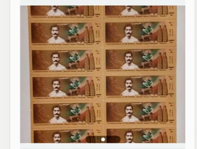 عنوان تمبر گرامیداشت پهلوان رزاز ، تیراژ ۵۵،۰۰۰ قطعه ، سال ۱۳۹۸