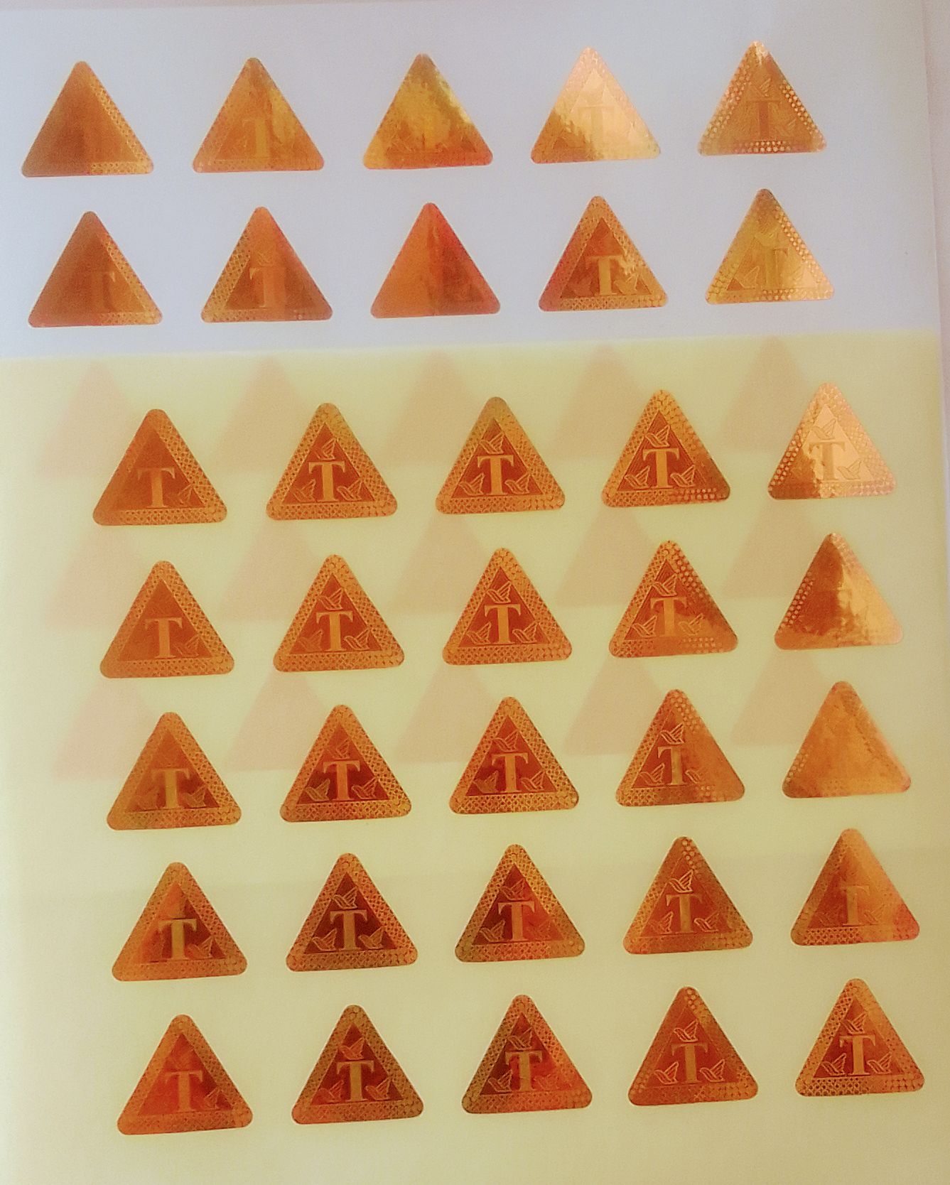 هولوگرام های مثلثی و مسی رنگ کسر تمبرپست با علامت اختصاری و بین المللی T برای مرسولاتی که کرایه پستی آنها از سوی فرستندگان ، ناقص پرداخت شده و کسری دارند مورد استفاده قرار می گیرد تا نامه رسان در هنگام تحویل نامه یا بسته پستی به گیرنده ، میزان کسری را از گیرنده مطالبه نماید. این هولوگرام ها در دو ورق زمینه زرد و سفید تولید و در دهه ۸۰ مصرف شده است کاغد سفید آن کمیباب است